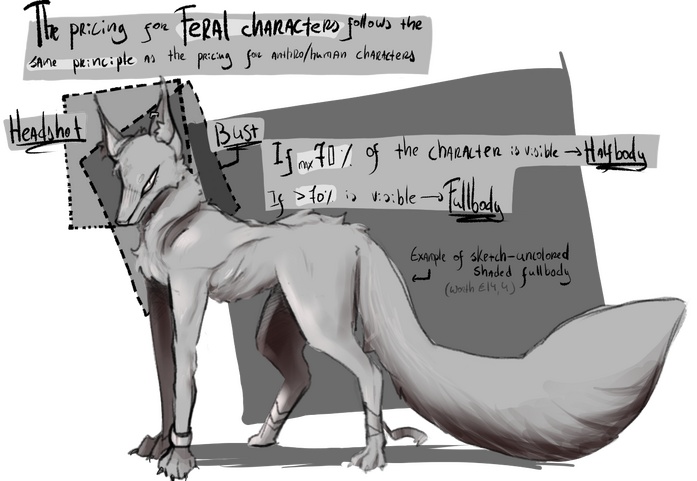 I always do references as a colored sketch, simply out of principle that is the only thing I feel comfortable offering. When ordering a reference you get minimum 2, maximum 4 angles (front +...). Their accessories, alternative outfits may be drawn separately, however that will cost extra!
